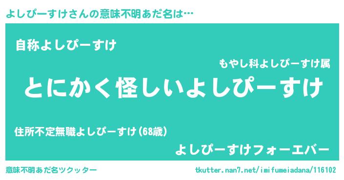 | 男性向けラノベタイトル風あだ名 | 『ダンジョンによしぴーすけを求めるのは間違っているだろうか』 |