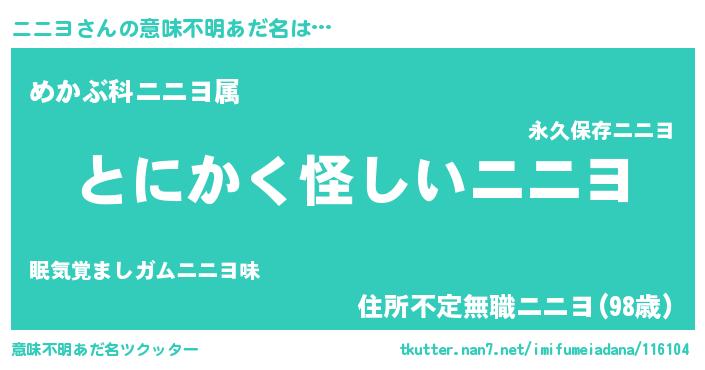 | ポケモン風あだ名 | 『ヒニニヨ』『ニニキング』 |