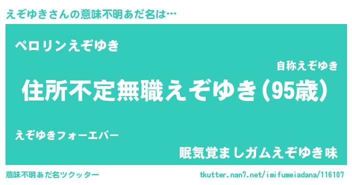 | 女子向けラノベタイトル風あだ名 | 『悪役えぞゆきに転生したようですが、知った事ではありません』 |