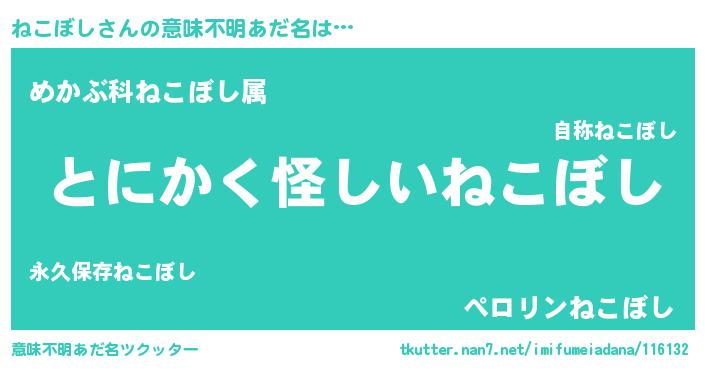 | 胡散臭い通販商品みたいなあだ名 | 『信頼と実績のサプリメント…その名も「ねこぼし」』 |