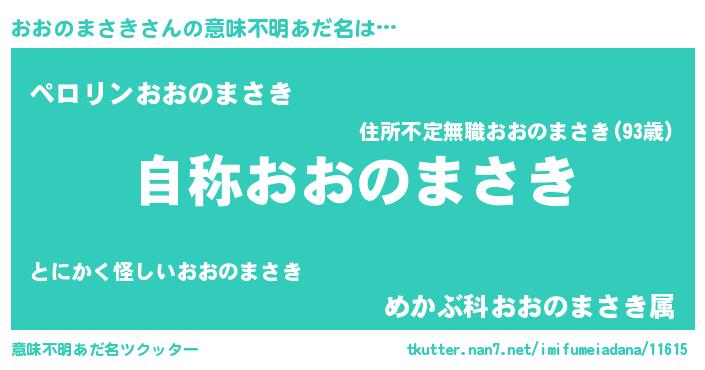 | 女子向けラノベタイトル風あだ名 | 『おおのまさきなんてお断りですっ。』 |