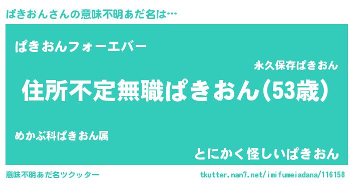 | 伝説のあだ名 | 『最古の忍者ぱきおん』 |