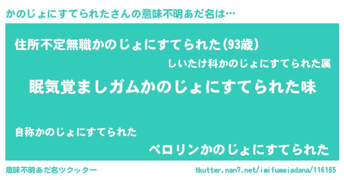| 男性向けラノベタイトル風あだ名 | 『ノーゲーム・ノーカノジョニステラレタ』 |