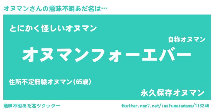 | 男性向けラノベタイトル風あだ名 | 『うちのオヌマンが世界を掌握している!』 |