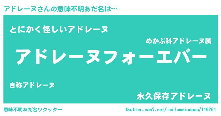 | 肩書あだ名 | 『アドレーヌ大統領』『アドレーヌ塾長』 |