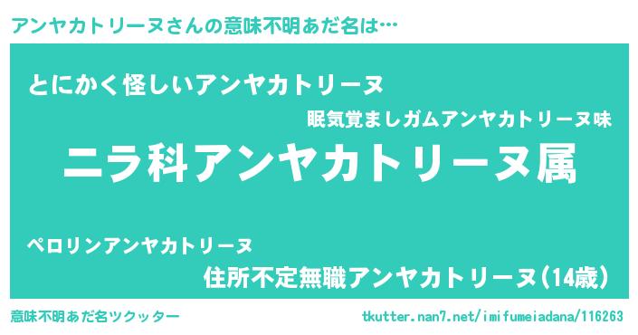 | 欧米人風あだ名 | 『トリンドルアンヤカトリーヌ』 |
