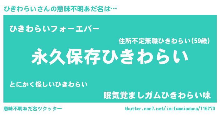 | 胡散臭い通販商品みたいなあだ名 | 『絶対に幸福をもたらす水素水…その名も「ひきわらい」』 |
