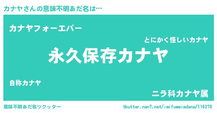 | 胡散臭い通販商品みたいなあだ名 | 『絶対に幸福をもたらす健康食品…その名も「カナヤ」』 |