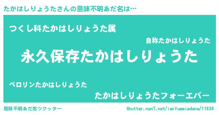 | ヘコむあだ名 | 『たかはしりょうた(小並感)』『なまこ酢』 |