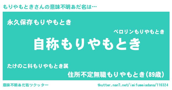 | ヘコむあだ名 | 『もりやもとき(小並感)』『もりっふぃ~』 |