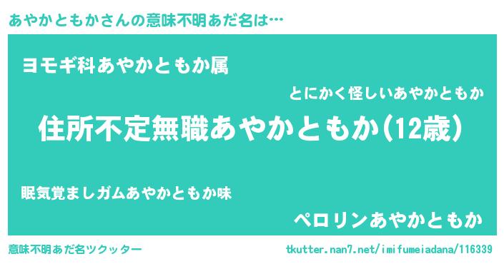| 男性向けラノベタイトル風あだ名 | 『この素晴らしい世界にあやかともかを!』 |