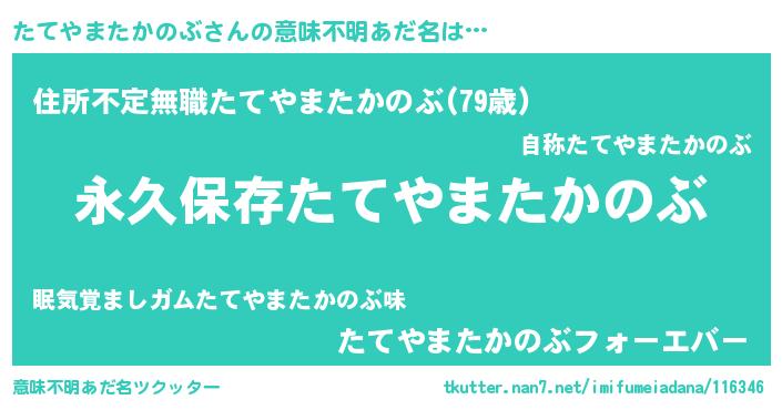 | ヒーロー風カッコイイあだ名 | 『ネオタテヤマタカノブ』『仮面タテダー』 |