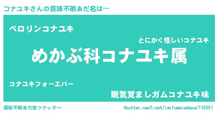 | ヒーロー風カッコイイあだ名 | 『スーパーコナユキ』『幻影騎士コナ』 |