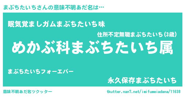 | ヘコむあだ名 | 『まぶちたいち(震え声)』『酢こんぶ』 |
