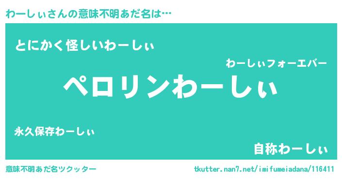 | 男性向けラノベタイトル風あだ名 | 『わーしぃに滅ぼされるだけの簡単なお仕事です』 |