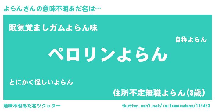 | ヒーロー風カッコイイあだ名 | 『スーパーヨラン』『正義の使者よらん』 |