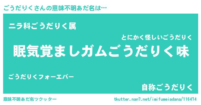 | 胡散臭い通販商品みたいなあだ名 | 『お金では代えられないイリジウム磁石…その名も「ごうだりく」』 |