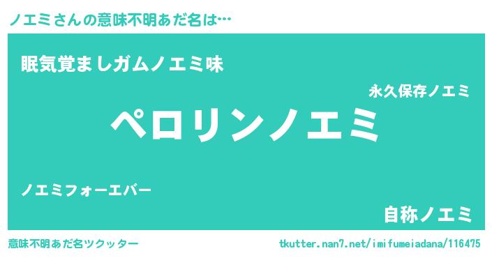 | ヘコむあだ名 | 『ノエにゅー』『ノエミ(笑)』 |