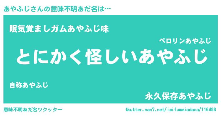 | ヘコむあだ名 | 『あやっちょ』『あやふじ(爆)』 |