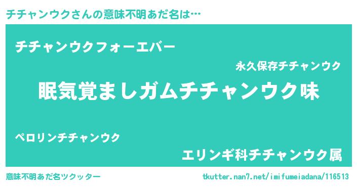 | 男性向けラノベタイトル風あだ名 | 『ノーゲーム・ノーチチャンウク』 |