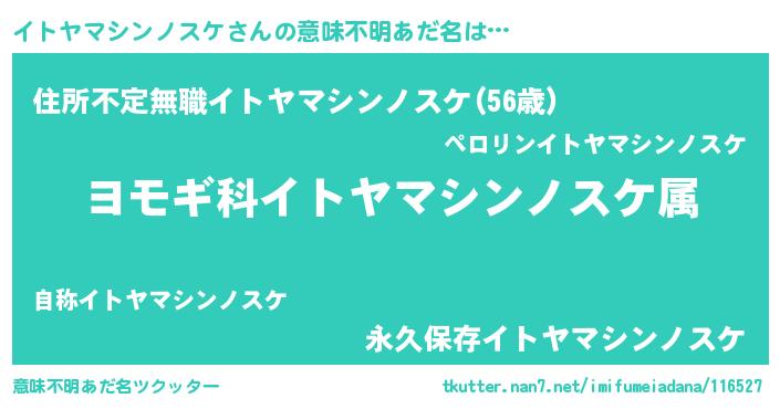 | ヘコむあだ名 | 『イトヤマシンノスケ(笑)』『イトにゅー』 |