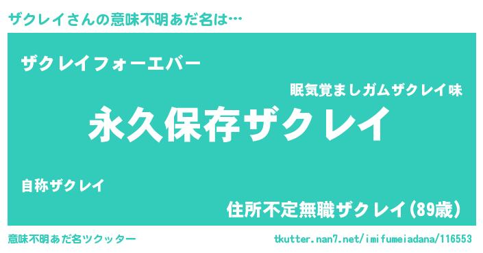 | ヒーロー風カッコイイあだ名 | 『ネオザクレイ』『ウルトラザクレイマン』 |