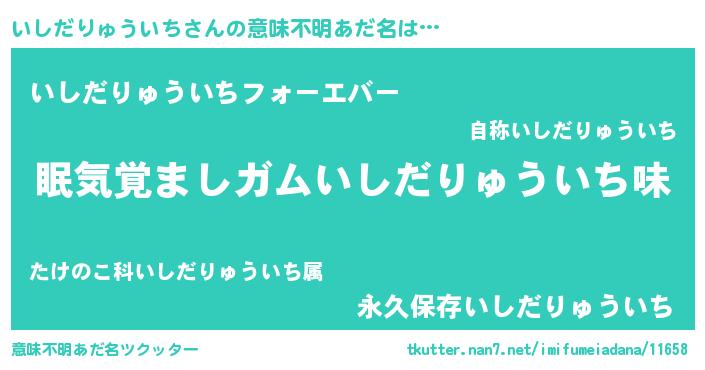 | 男性向けラノベタイトル風あだ名 | 『いしだりゅういちに滅ぼされるだけの簡単なお仕事です』 |