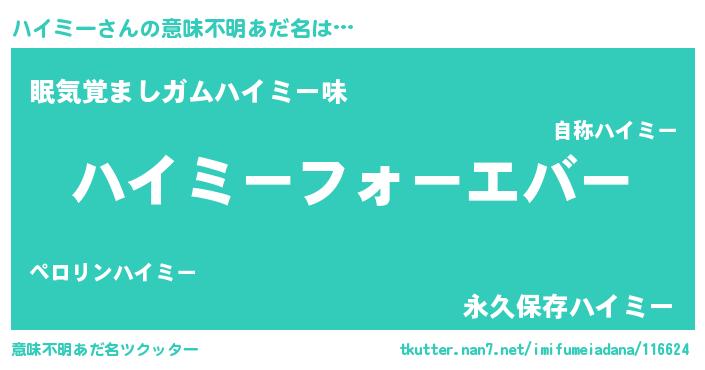 | ヒーロー風カッコイイあだ名 | 『ウルトラハイミーマン』『ネオハイミー』 |