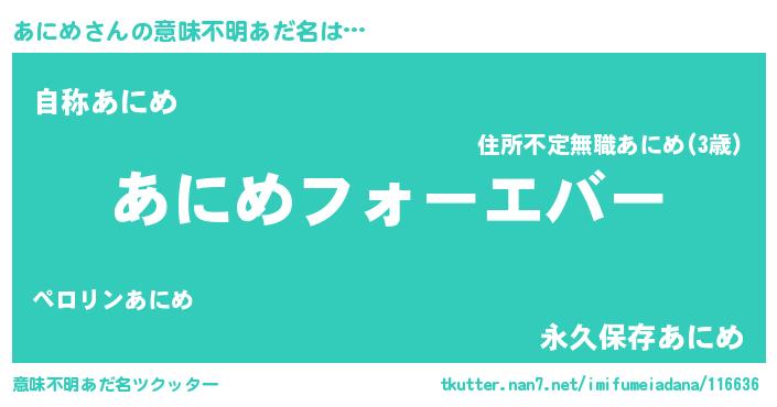 | 欧米人風あだ名 | 『アンジェラ・あにめ』 |