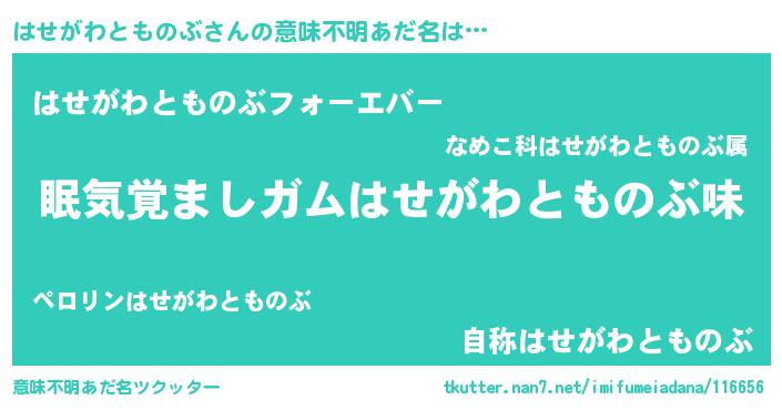 | 男性向けラノベタイトル風あだ名 | 『おまえをオタクにしてやるから、俺をはせがわとものぶにしてくれ! 』 |
