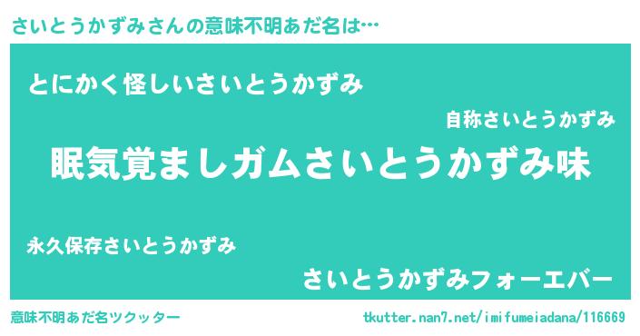| 男性向けラノベタイトル風あだ名 | 『ノーゲーム・ノーサイトウカズミ』 |