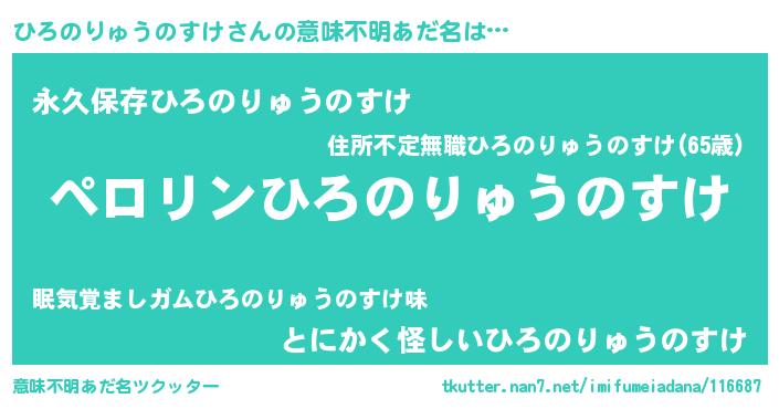 | ヒーロー風カッコイイあだ名 | 『スーパーヒロノリュウノスケ』 |