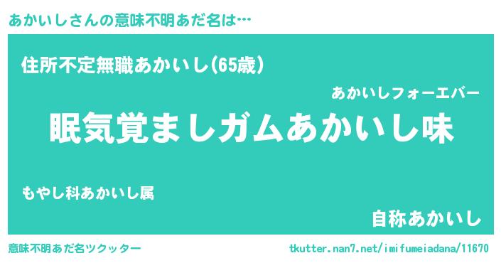 | ヒーロー風カッコイイあだ名 | 『慈愛の使者あかいし』『仮面アカダー』 |