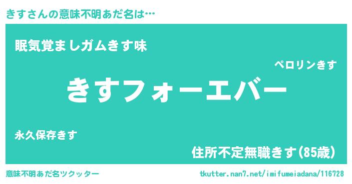 | ヒーロー風カッコイイあだ名 | 『ウルトラきすマン』『慈愛の使者きす』 |