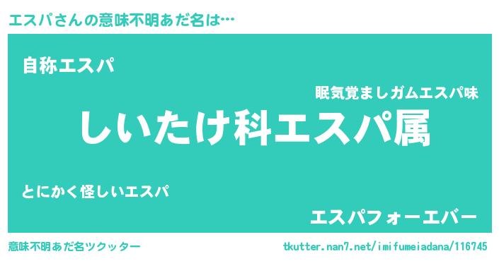 | 料理風あだ名 | 『エスパごはん』『栗とエスパのマフィン』 |
