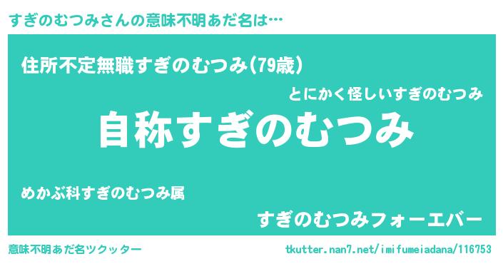 | 胡散臭い通販商品みたいなあだ名 | 『芸能人もオススメする高麗人参…その名も「すぎのむつみ」』 |