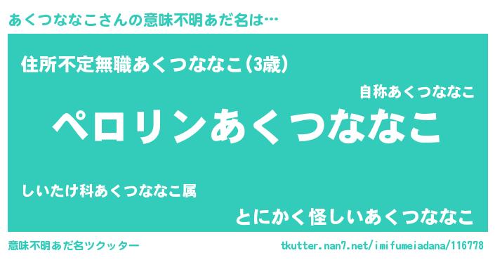 | 欧米人風あだ名 | 『マイケルあくつななこ』 |