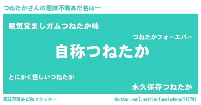 | 男性向けラノベタイトル風あだ名 | 『Re:つねたかから始める異世界生活』 |