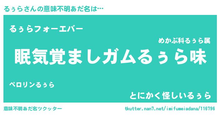 | ヒーロー風カッコイイあだ名 | 『慈愛の使者るぅら』『魔戒騎士ルゥ』 |