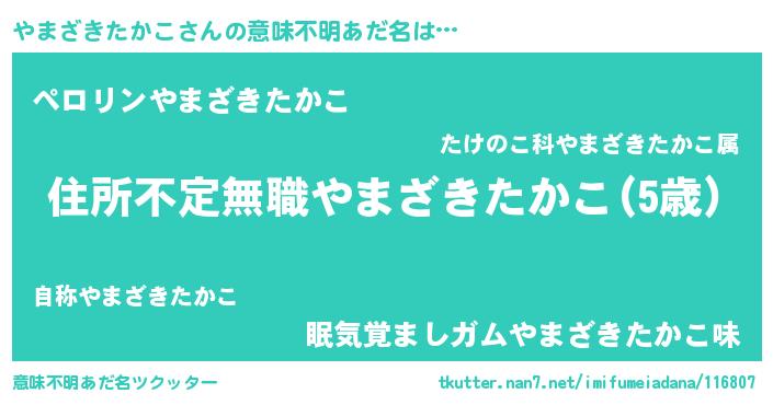 | 料理風あだ名 | 『やまざきたかこのカルパッチョ風』 |
