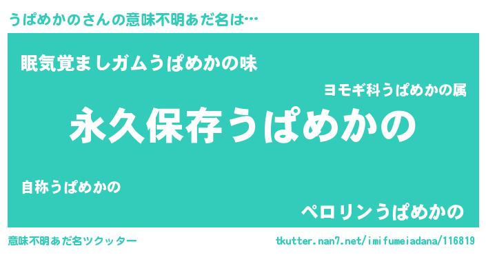 | ヘコむあだ名 | 『うぱめかの(爆)』『うぱにー』 |