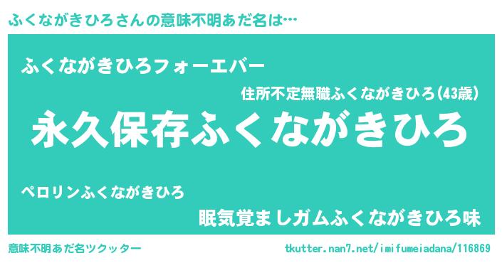 | 男性向けラノベタイトル風あだ名 | 『ふくながきひろという概念が存在しない退屈な世界 』 |