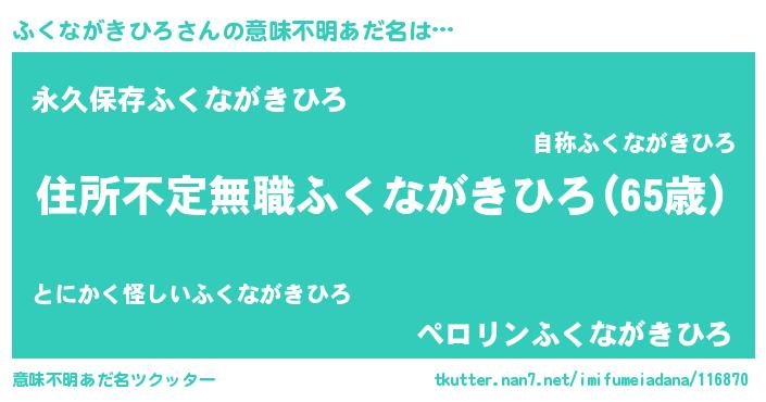 | ヘコむあだ名 | 『ふくながきひろ(苦笑)』『ふくふぇ~』 |