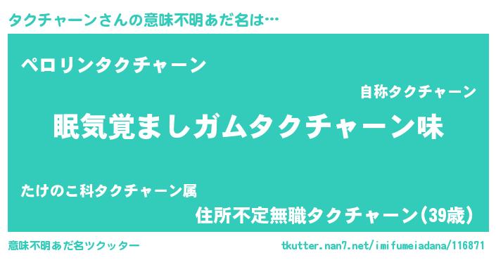 | ヒーロー風カッコイイあだ名 | 『慈愛の使者タクチャーン』 |