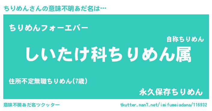 | 男性向けラノベタイトル風あだ名 | 『チリメンスレイヤー』 |