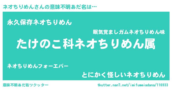 | 胡散臭い通販商品みたいなあだ名 | 『来世でも幸せになれる健康食品…その名も「ネオちりめん」』 |