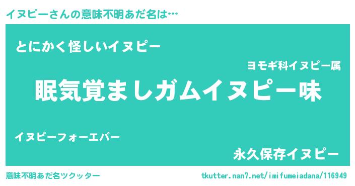 | 男性向けラノベタイトル風あだ名 | 『おまえをオタクにしてやるから、俺をイヌピーにしてくれ! 』 |