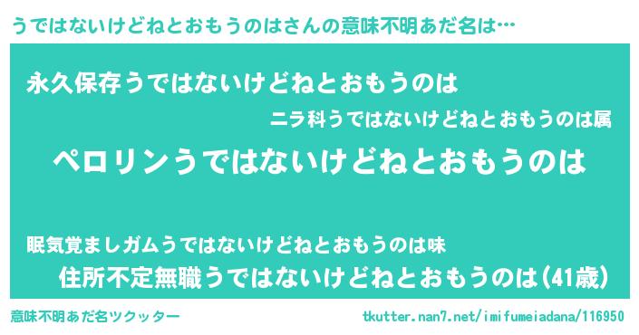 | ピコ太郎風あだ名 | 『ウコ三郎』『ピコウ郎』『ウウ太郎』 |
