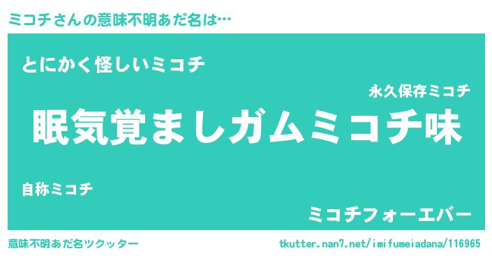 | ヘコむあだ名 | 『ミコ太郎』『豆乳』『ミコにゅー』 |