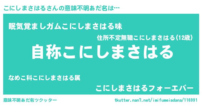 | 肩書あだ名 | 『こにしまさはる閣下』 |